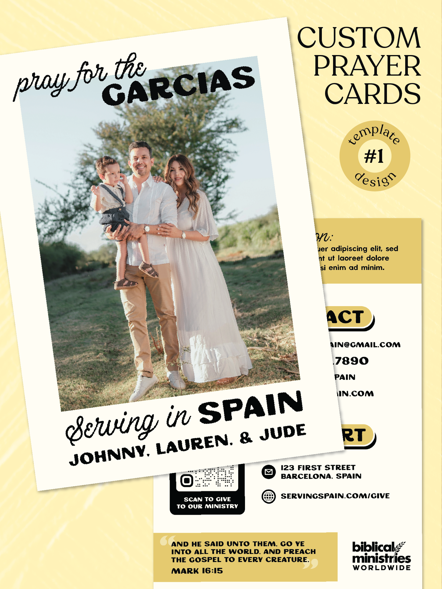 Missionary Prayer Cards CUSTOMIZED & PRINTED (Template Design #1)